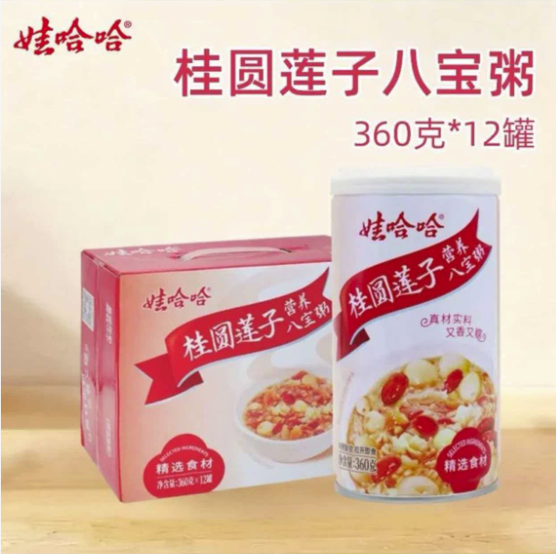 【整箱】娃哈哈桂圆莲子营养八宝粥360g*12罐营养速食粥即食早餐