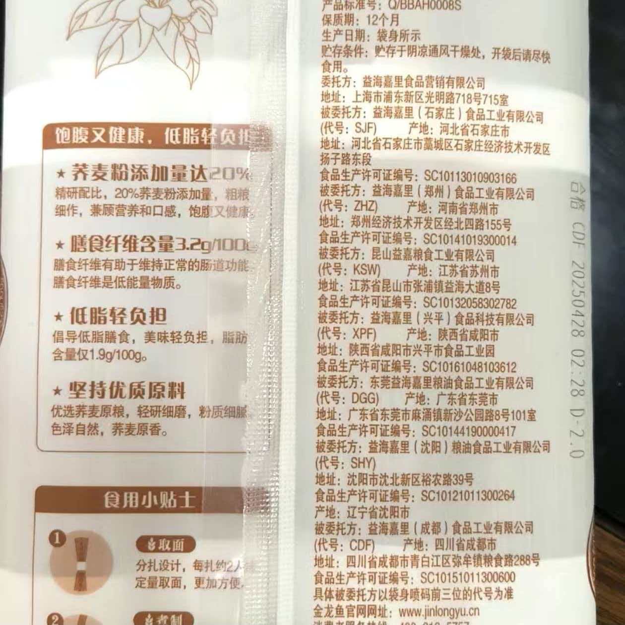 陈克明800g软弹面劲道软弹营养早餐面食配料干净日晒